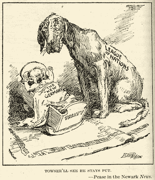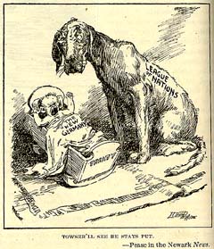 Towser'll See He Stays Put Literary Digest, 7/12/19. Originally from the Brooklyn Eagle (Harding). political cartoon