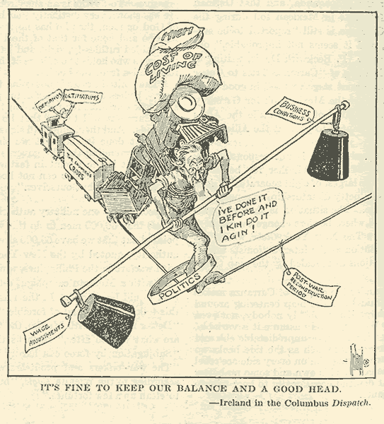 It's Fine to Keep Our Balance and a Good Head Literary Digest, 8/30/19. Originally from the Columbus Dispatch (Ireland). political cartoon