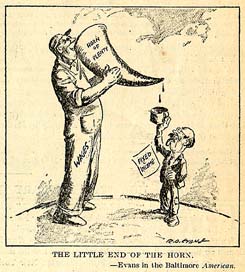 The Little End of the Horn Literary Digest, 9/20/19. Originally from the Baltimore American (Evans). political cartoon