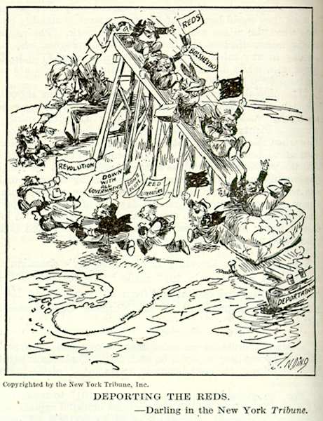 Deporting the Reds Literary Digest, 12/13/19. Originally from the New York Tribune (Darling). political cartoon