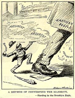 A Method of Converting the Majority Literary Digest, 1/24/20. Originally from the Brooklyn Eagle (Harding). political cartoon