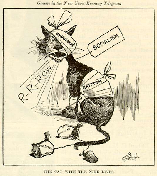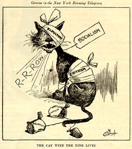 The Cat with the Nine Lives Outlook, 1/28/20. Originally from the New York Evening Telegram. (Greene). political cartoon