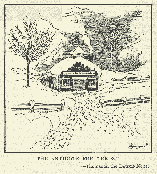 The Antidote for "Reds" (Little Red School House) Literary Digest, 2/7/20. Originally from the Detroit News (Thomas). political cartoon