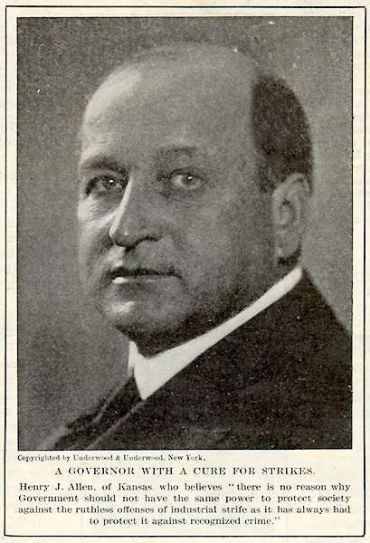 Allen, Henry J. (Gov. Kans.), Kansas, Strikes,